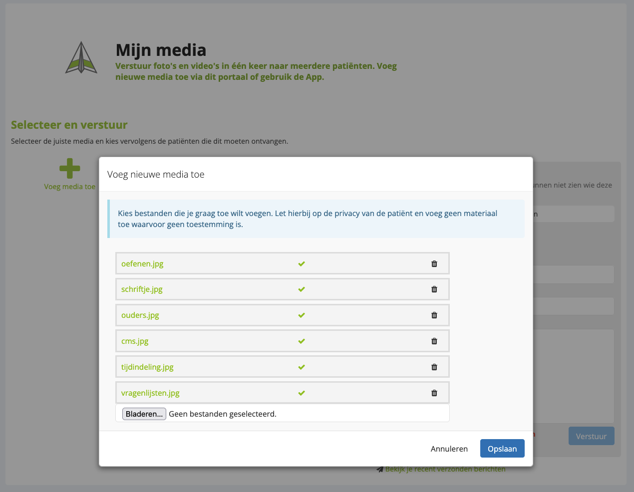 Via de App kan je nu, naast foto’s en video’s, ook bestanden meesturen via een berichtje of Mijn Media. Dit kan al langer via het portaal en nu dus ook via de App! Een andere nieuwe functie is dat je nu op de voorbeeldweergave van een foto, video of bestand kan klikken. Je krijgt dan een nieuw scherm waarin je de foto, video of de inhoud van het bestand kunt bekijken.