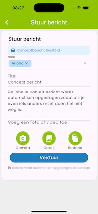 Het opslaan van conceptberichten is nu ook beschikbaar in de app. Deze functionaliteit was al bekend vanuit het portaal en is nu dus ook mobiel te gebruiken.